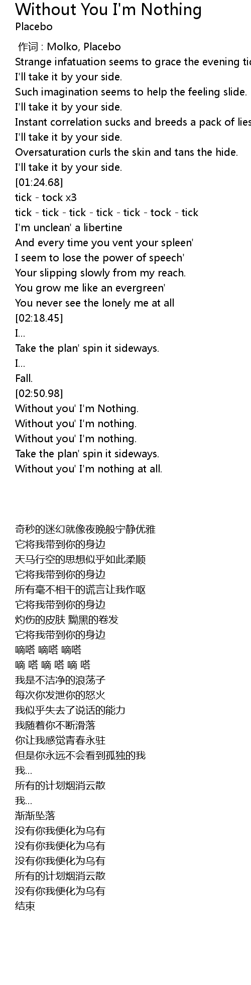 | [00:00.00] | zuò cí : Molko, Placebo |