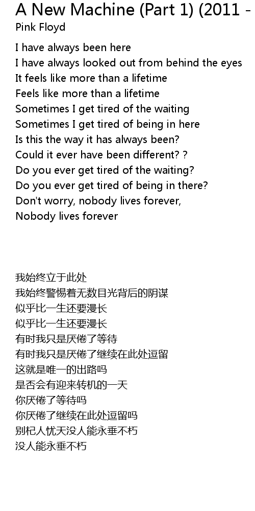 | Song | A New Machine (Part 1) (2011 - Remaster) |