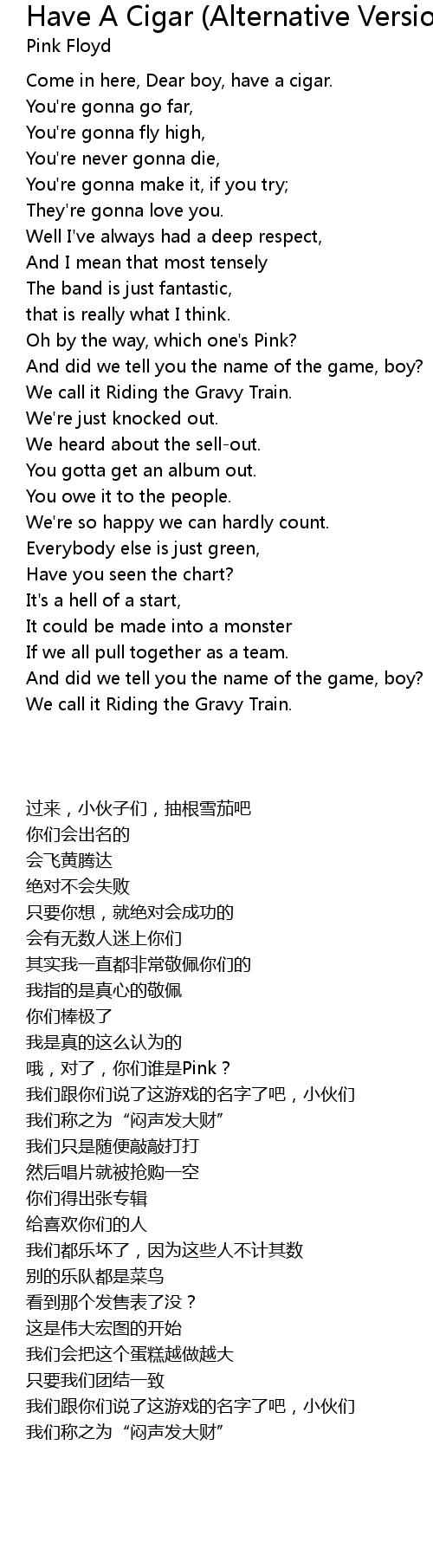 Come in here, Dear boy, have a cigar. |