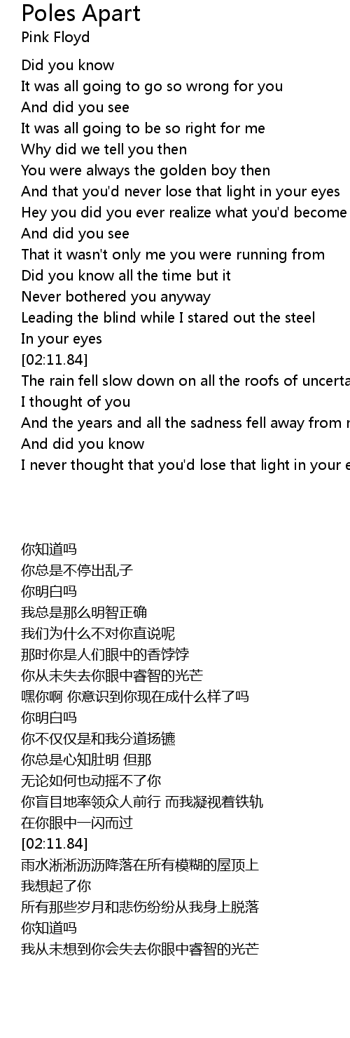I never thought that you'd lose that light in your eyes |