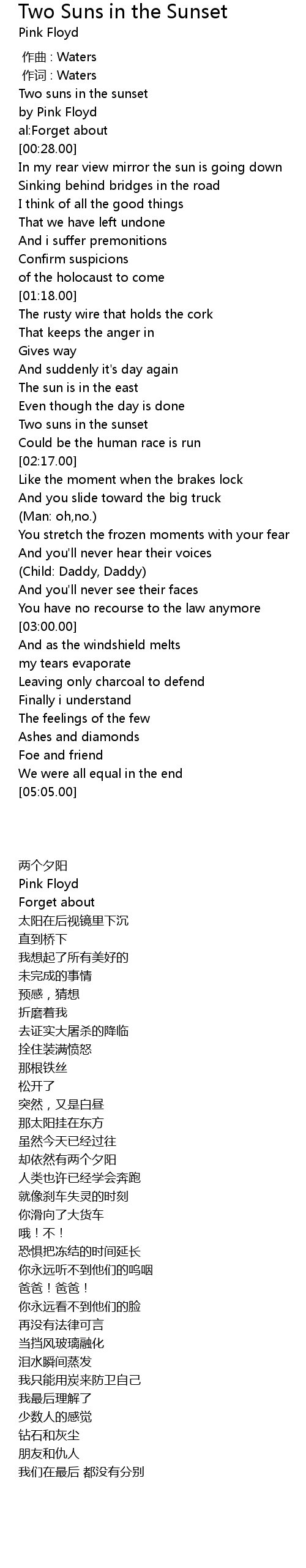 | [01:48.50] | Two suns in the sunset |