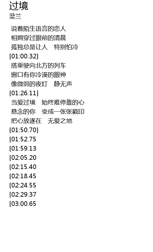 | [01:04.99] | 搭乘驶向北方的列车 |