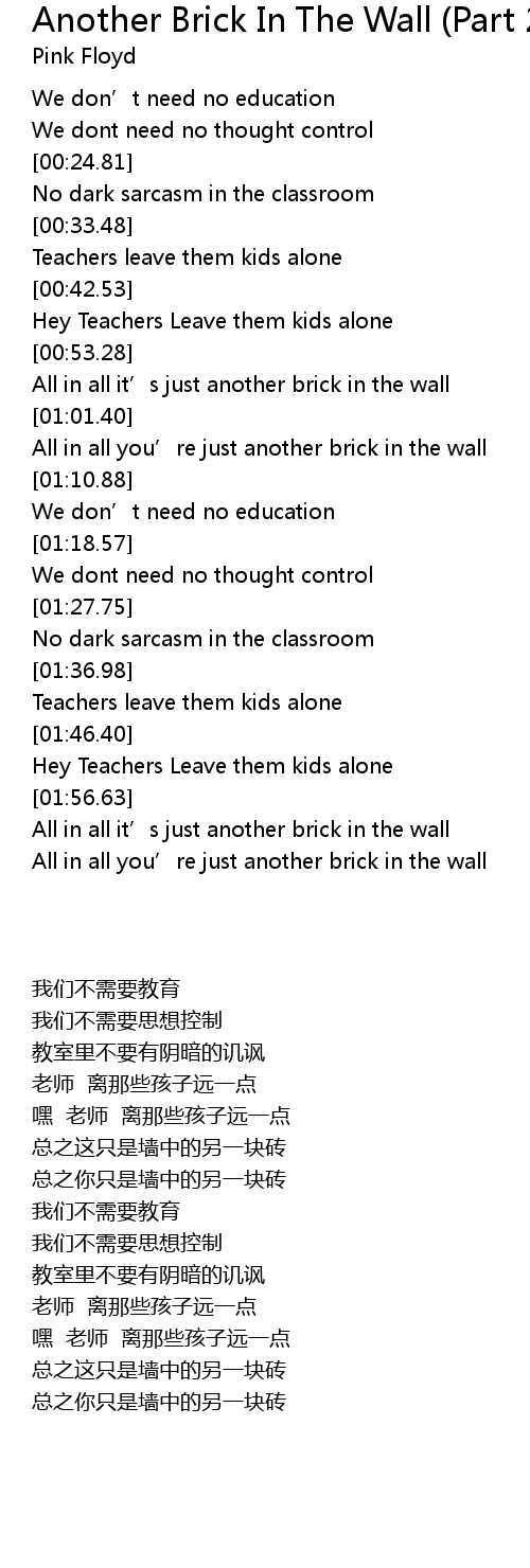 | [02:00.95] | All in all it’s just another brick in the wall |
