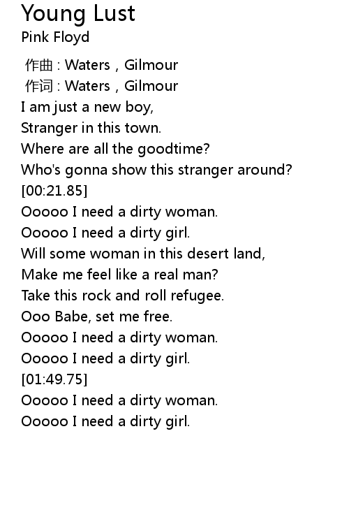 | [00:31.49] | Ooooo I need a dirty woman. |