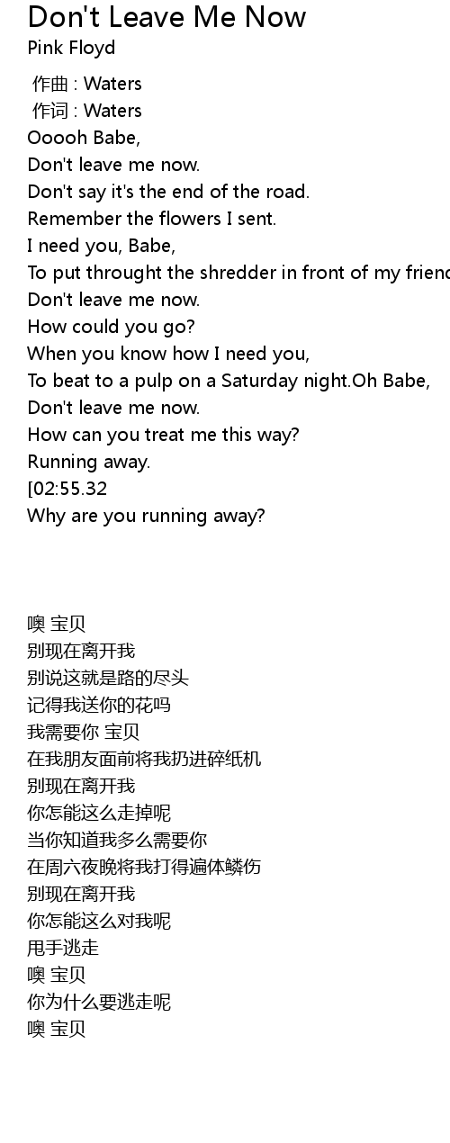 | [02:13.38] | To beat to a pulp on a Saturday night.Oh Babe, |