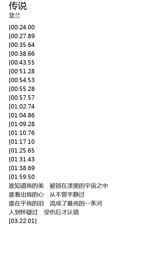 | [03:25.70][01:10.76] | 谁知道我的美 被锁在漆黑的宇宙之中 |