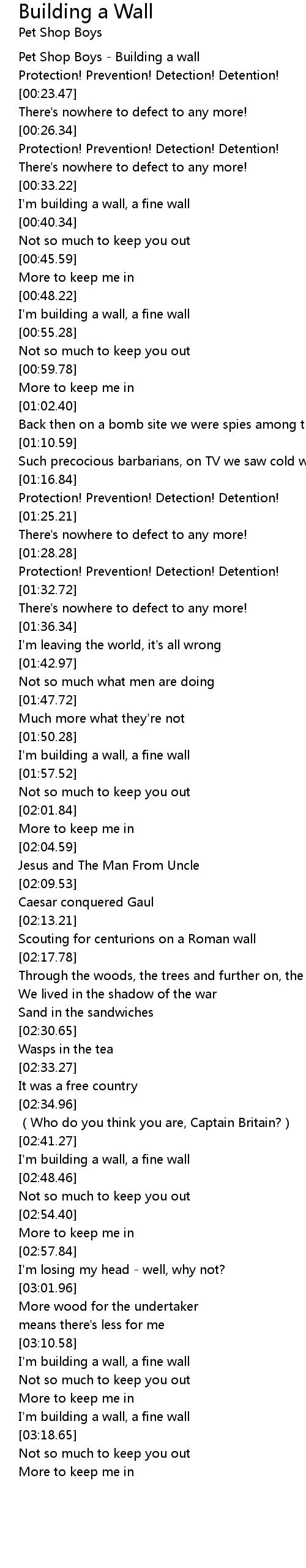 | [00:01.47] | Pet Shop Boys Building a wall |