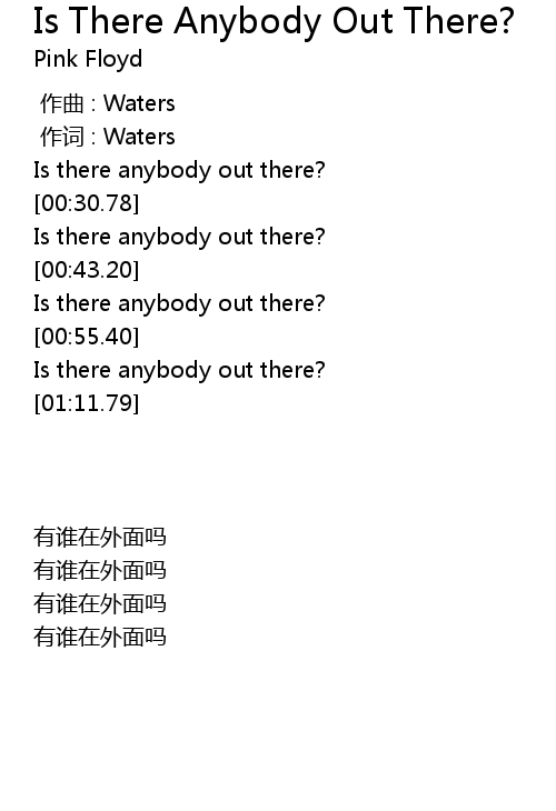 | [00:51.72] | Is there anybody out there? |