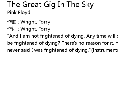 | " And I am not frightened of dying. Any time will do, I don' t mind. Why should I be frightened of dying? There' s no reason for it. You' ve gotta go sometime."" I never said I was frightened of dying." Instrumental |