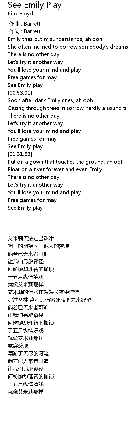 | [00:43.82] | See Emily play |