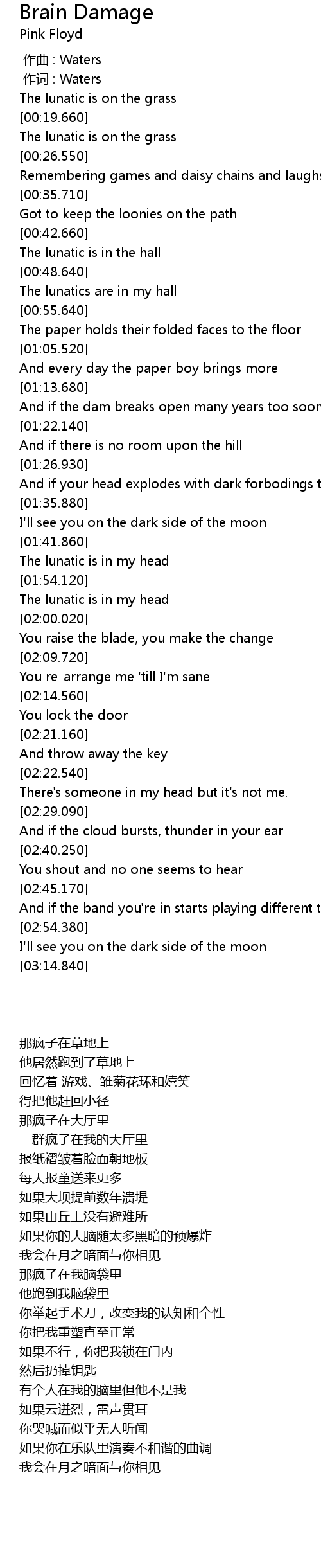 | [01:36.810] | I' ll see you on the dark side of the moon |