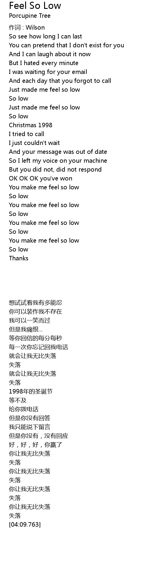 | You make me feel so low | |