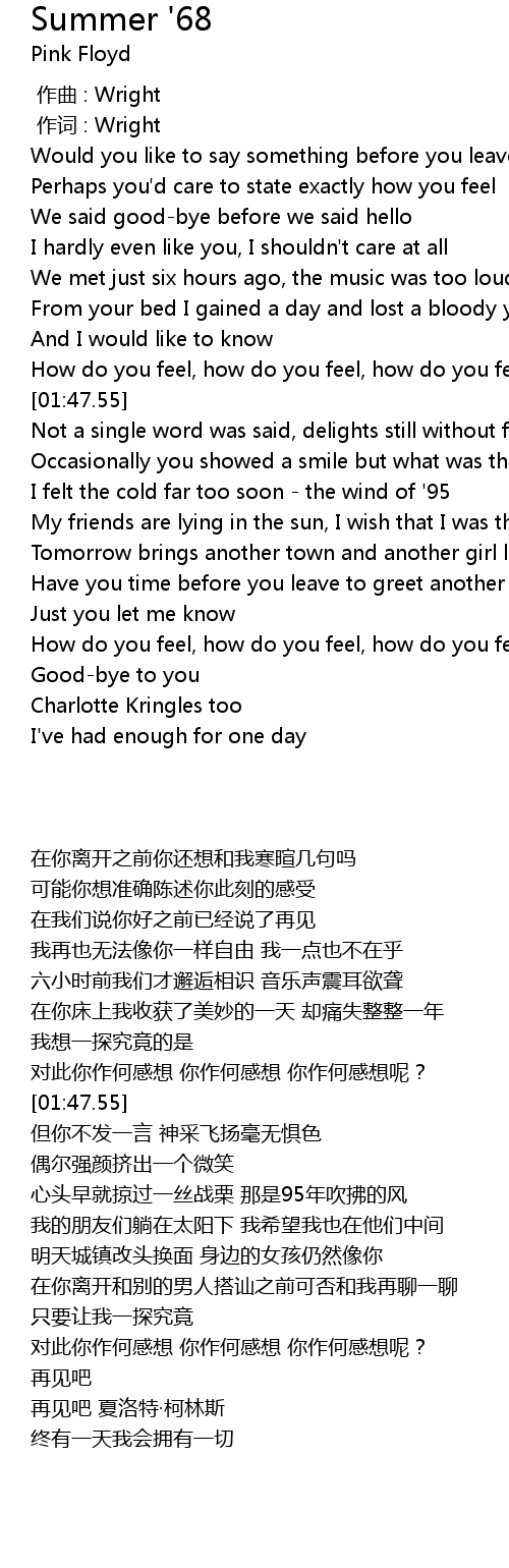 | [01:13.50] | How do you feel, how do you feel, how do you feel? |