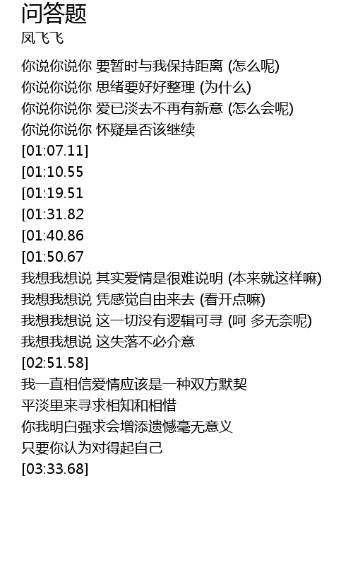 | [02:33.10] | 我想我想说 这一切没有逻辑可寻 (呵 多无奈呢) |
