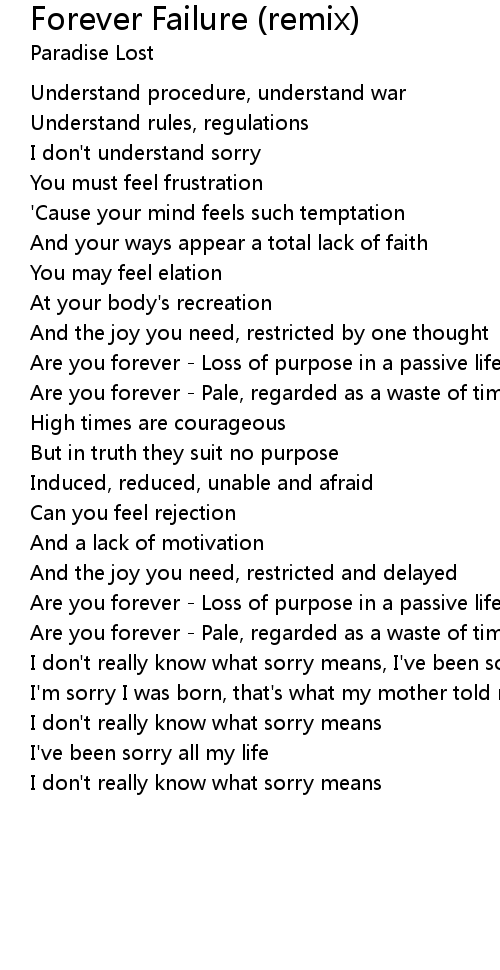 I don't really know what sorry means, I've been sorry all my life |