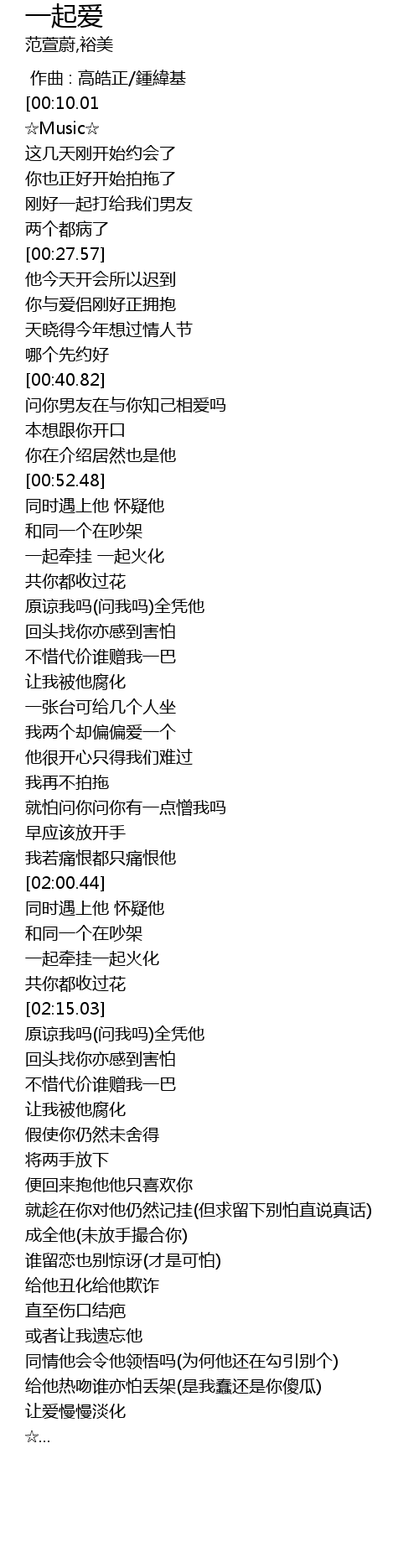 | [00:41.60] | 问你男友在与你知己相爱吗 |