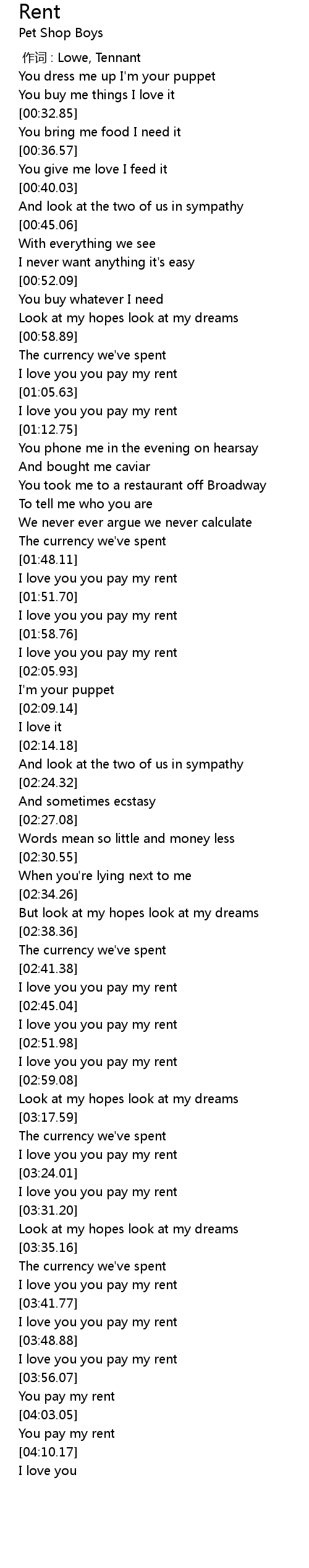 | [03:38.62] | I love you you pay my rent |