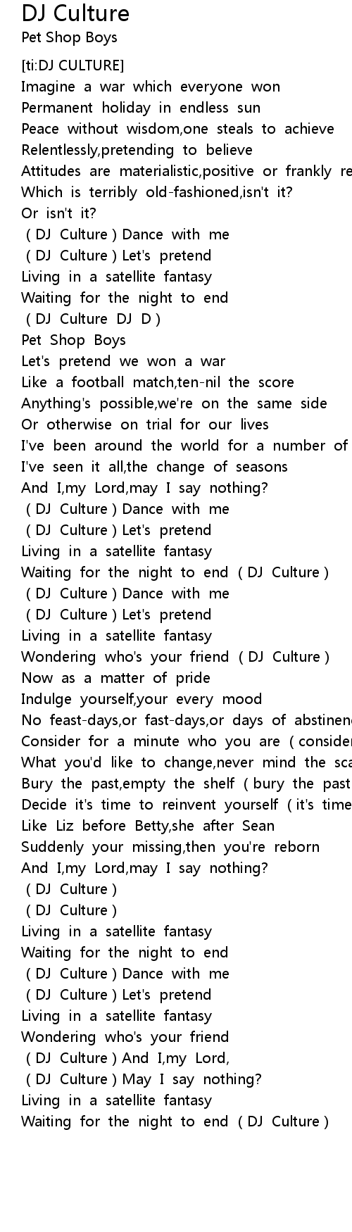 | [00:59.847] | (DJ Culture)Let's pretend |
