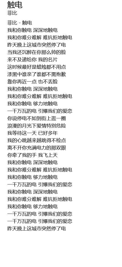 | [02:41.96] | 我和你触电 深深地触电 |