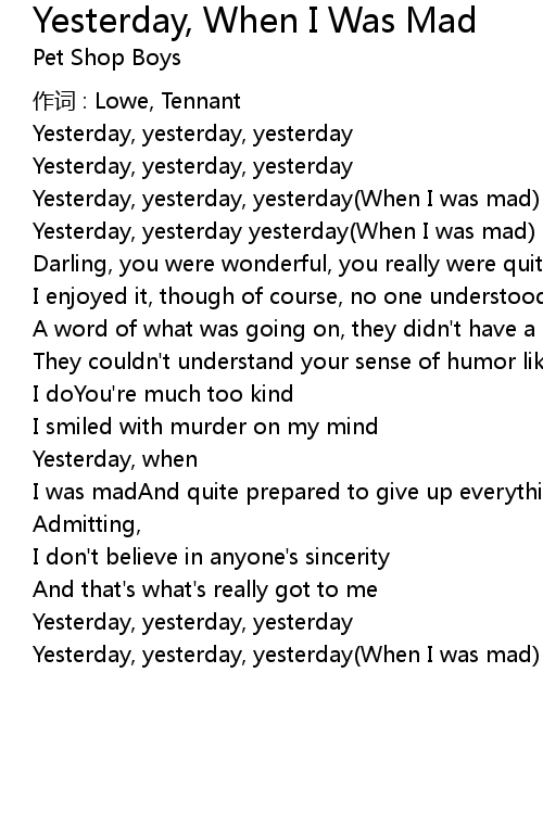 | Yesterday, yesterday, yesterday(When I was mad) |