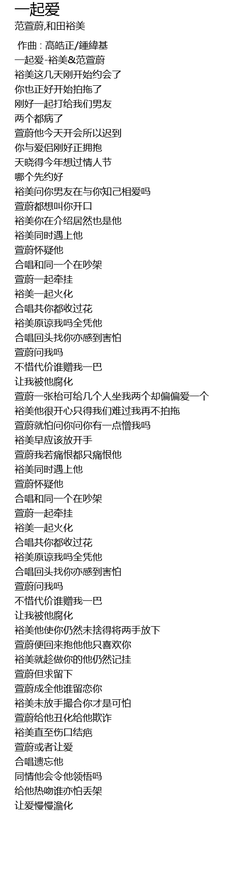 | [00:07.400] | 一起爱-裕美&范萱蔚 |