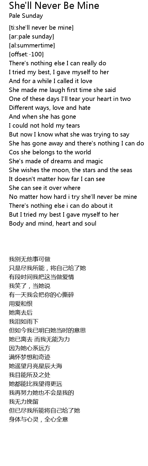 | [ti:she'll never be mine] | |