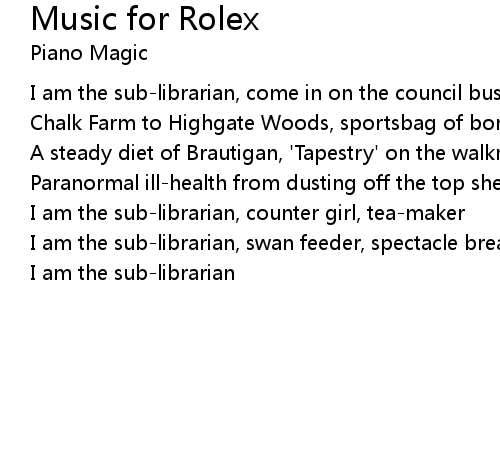 | I am the sub-librarian, swan feeder, spectacle breaker | |