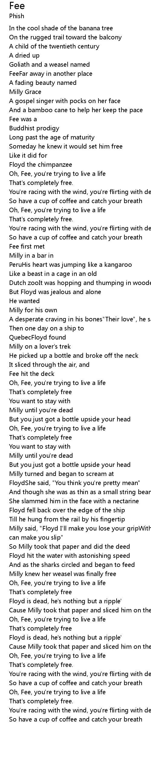 Milly said, "Floyd I'll make you lose your gripWith this tiny piece of paper I can make you slip" |