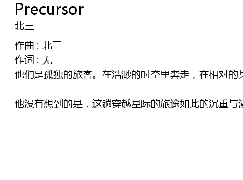 | 他们是孤独的旅客。在浩渺的时空里奔走,在相对的某段时间里停留。潜移默化中变为宇宙的一部分,不再在乎得失,错过还是消亡。 | |