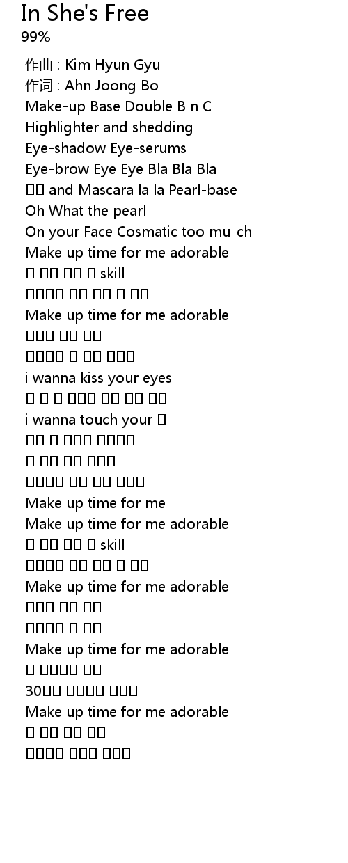 | [00:39.102] | Make up time for me adorable |