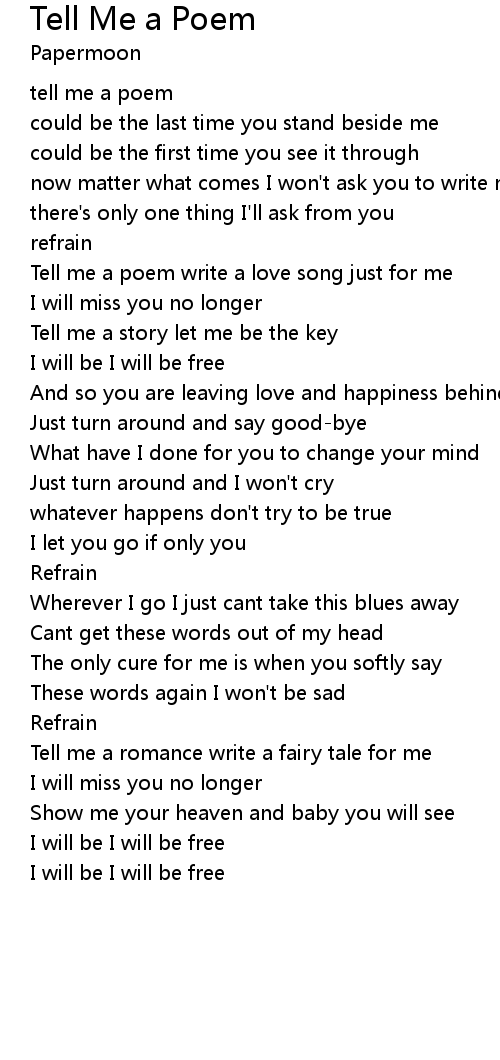Tell me a poem write a love song just for me |