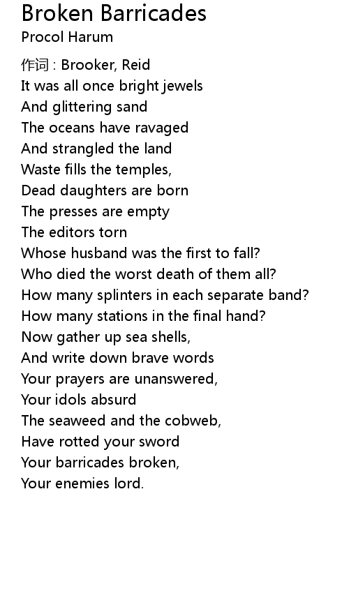 | Song | Broken Barricades |