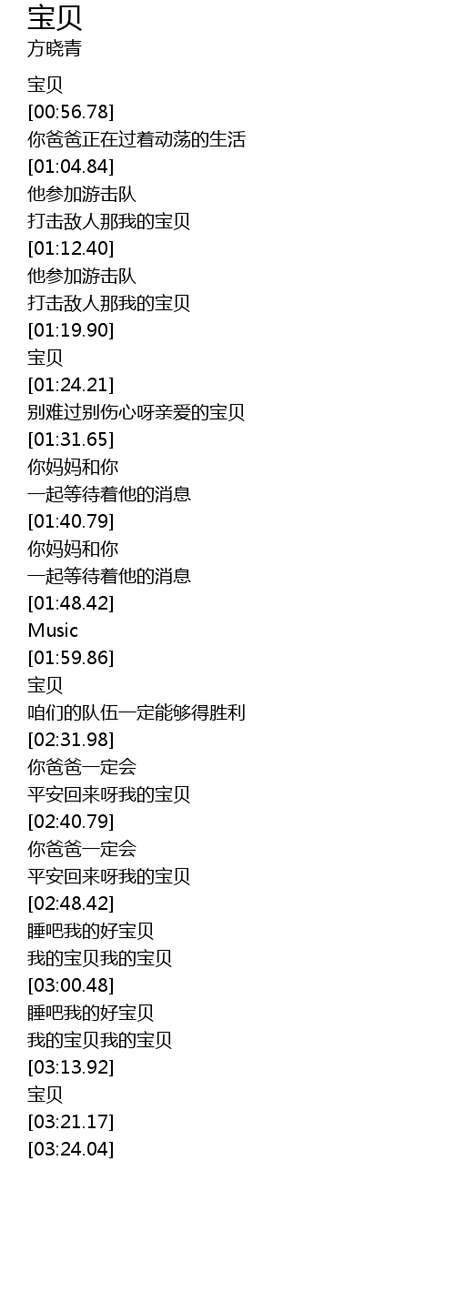 | [03:06.42] | 我的宝贝我的宝贝 |