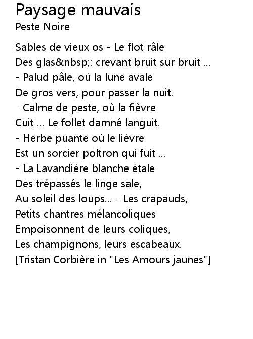 | [Tristan Corbière in "Les Amours jaunes"] |