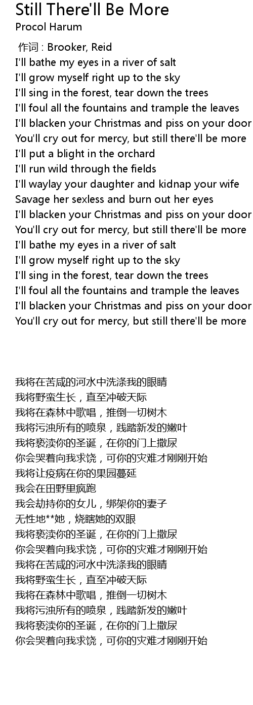 | [03:25.860] | You' ll cry out for mercy, but still there' ll be more |