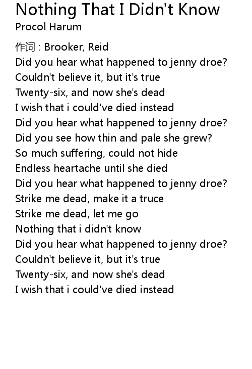 | Did you hear what happened to jenny droe? | |