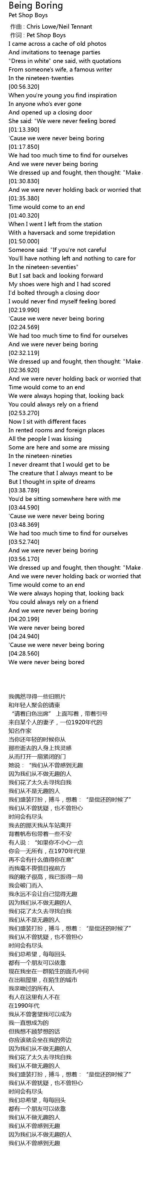 | [00:01.00] | zuò cí : Pet Shop Boys |