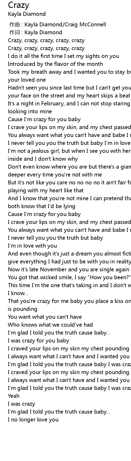 | [02:45.420] | I'm glad I told you the truth cause baby I was crazy. I was crazy |