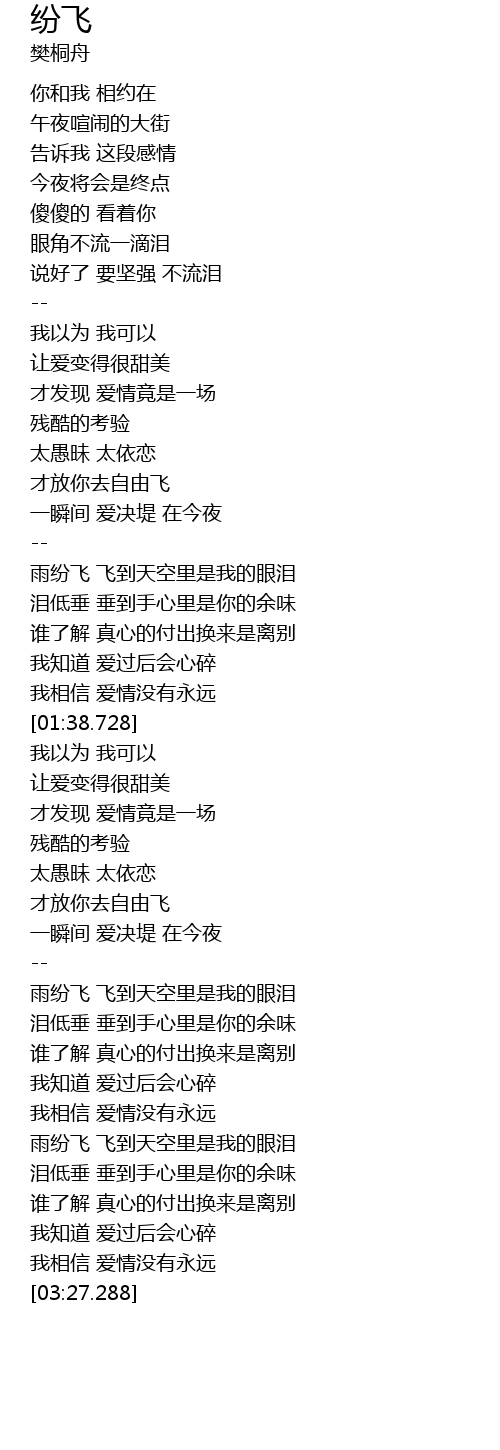 | [03:00.789] | 雨纷飞 飞到天空里是我的眼泪 |