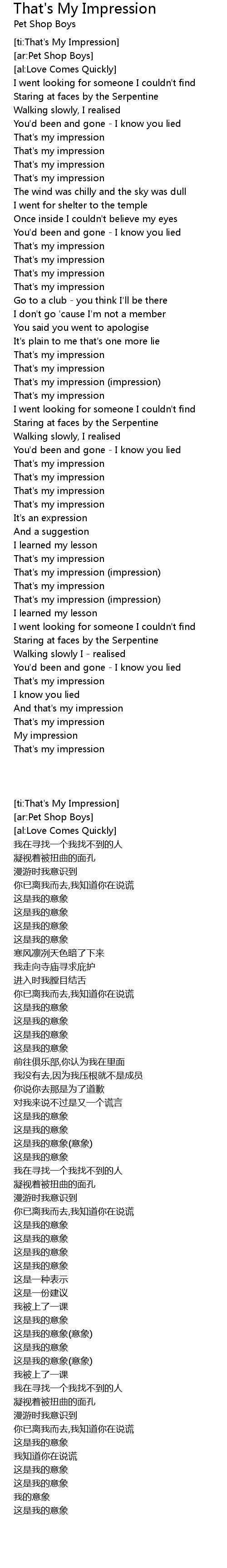 [ti:That's My Impression] |