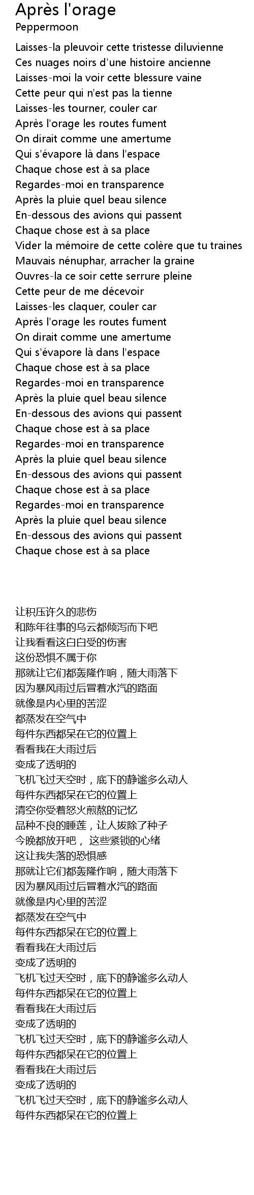 | [02:44.29] | Aprè s la pluie quel beau silence |