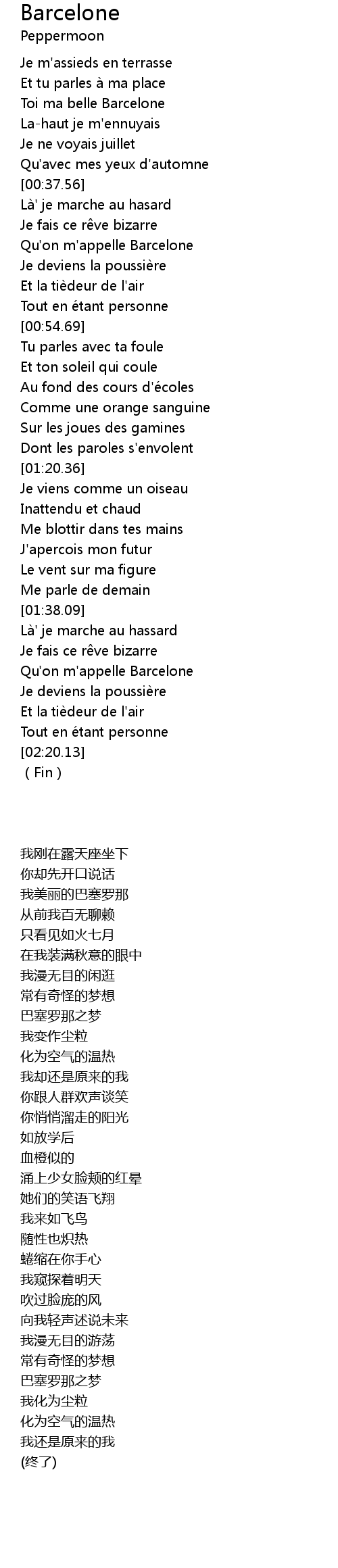 | [00:44.70] | Qu' on m' appelle Barcelone |