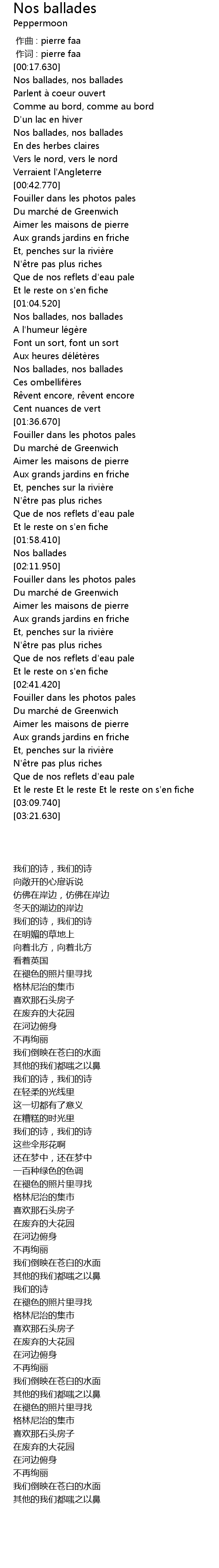 | [02:36.150] | Que de nos reflets d' eau pale |