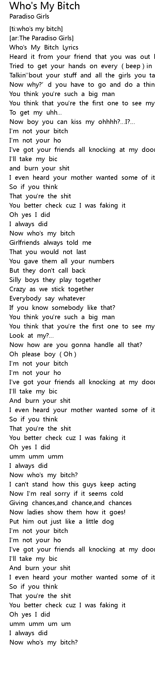 | [00:00.789] | Who' s My Bitch Lyrics |