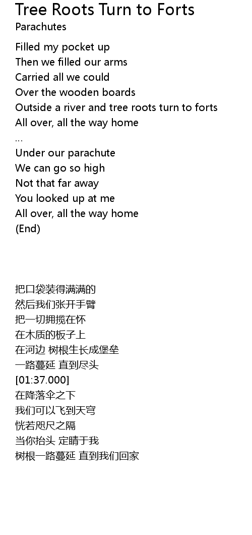 | [01:06.000] | Outside a river and tree roots turn to forts |