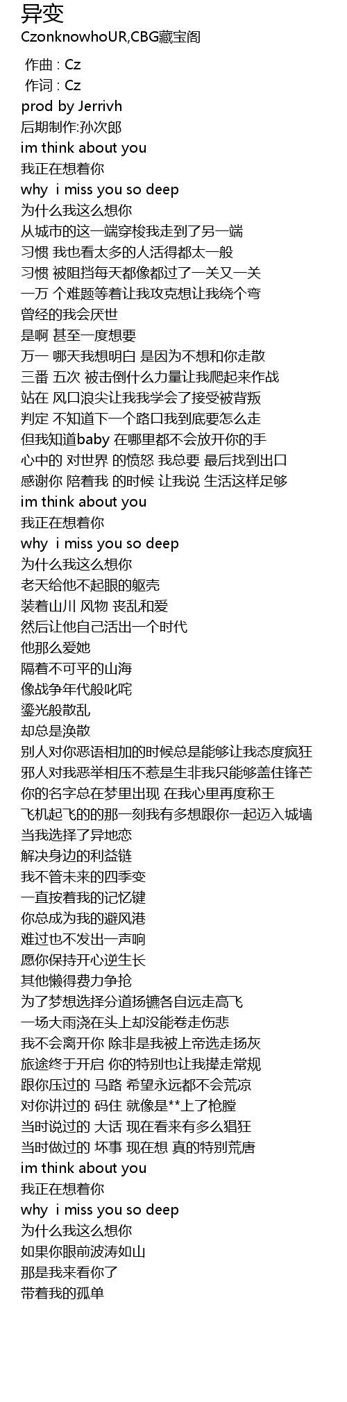 | [00:01.000] | 作词 : Cz |