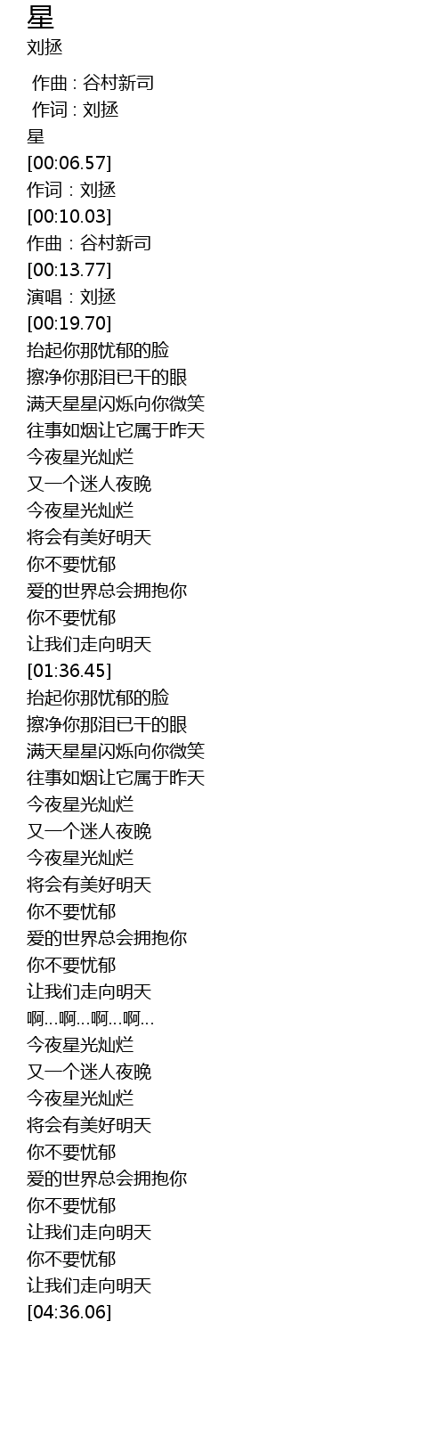 | [00:39.28] | man tian xing xing shan shuo xiang ni wei xiao |