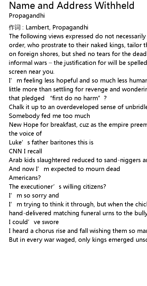 | 作词 : Lambert, Propagandhi | |