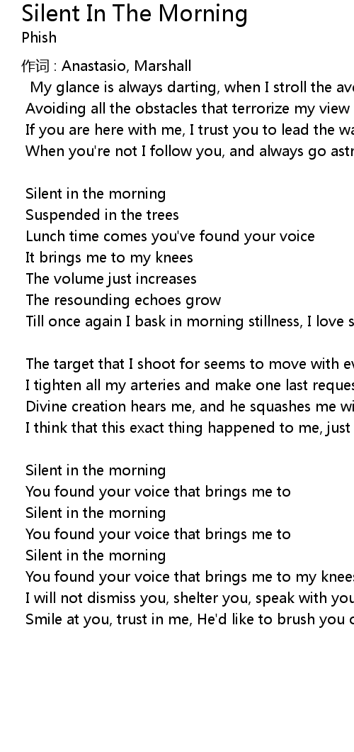 | Song | Silent In The Morning |