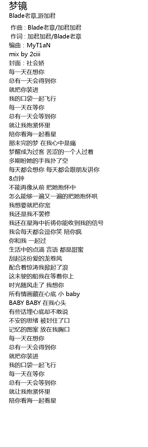 | [00:01.000] | 作词 : 加君加君/Blade老章 |
